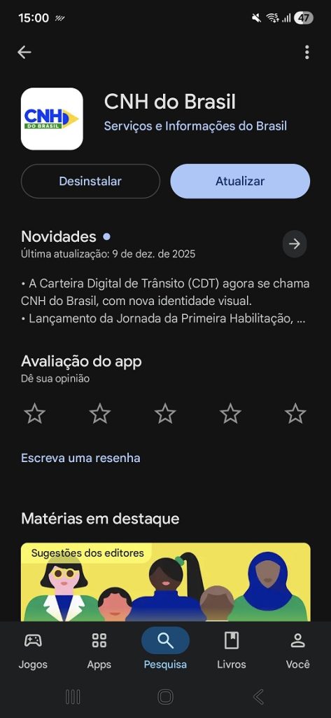 Se você já tem o aplicativo da CNH digital em seu celular, basta atualiza-lo. Você pode fazer isso acessando a loja de aplicativos (pode ser que seu celular atualize de forma automática também):